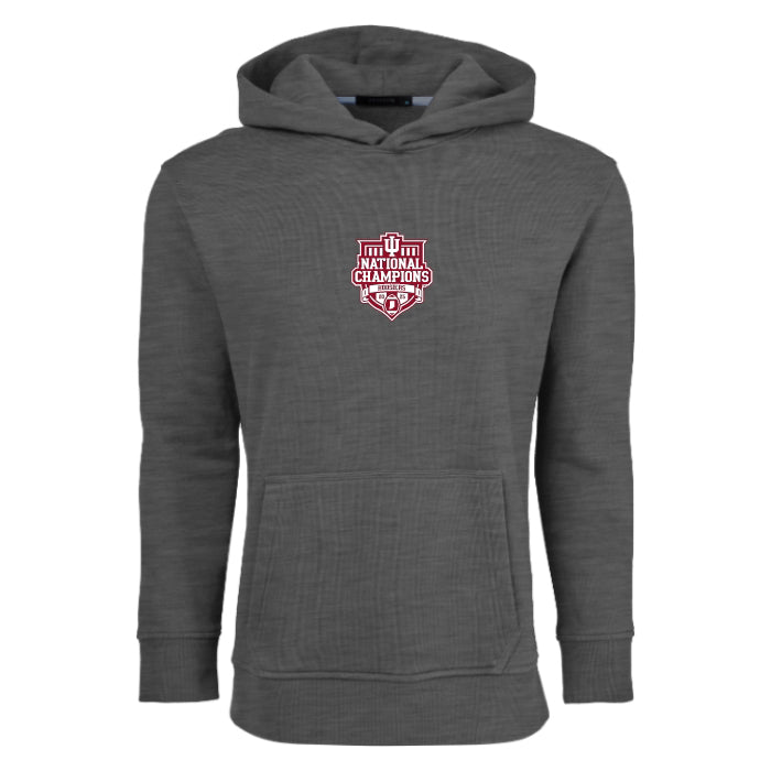Celebrate the Hoosiers' historic season with our exclusive, limited edition, National Champions Vintage Aspen Hoodie from Greyson. Featuring a chenille patch with the national championship logo on the front, this hoodie is designed to become a staple across your lifestyle. This buttery-soft heavyweight sweatshirt is crafted from 100% cotton and features a front pocket, ribbed cuffs, and ribbed hem for added comfort. It's the perfect addition to your everyday wardrobe, carrying you through the season with refined comfort.
