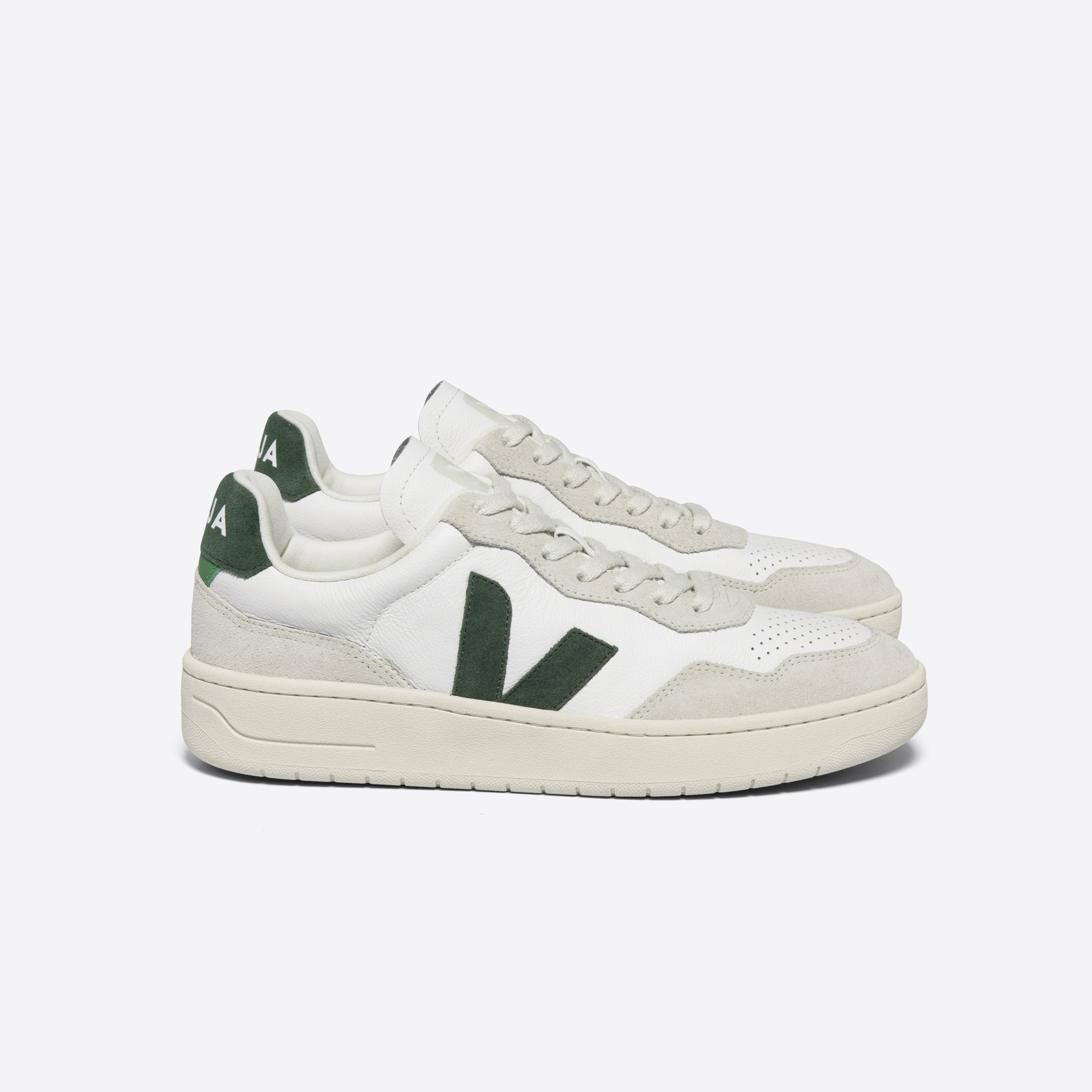 The V-90 is VEJA's retro 90's inspired sneaker made with O.T. (Organic Traced) leather that comes from 100% organic certified farms in Uruguay, a country known for its culture of animal husbandry and the quality of the leather. It is the softest and finest bovine leather and undergoes a mechanical beating process that makes it fine and bendable. The leather is tanned in Brazil using less dyes than conventional bovine leather with special attention paid to water consumption during the tanning process.